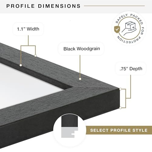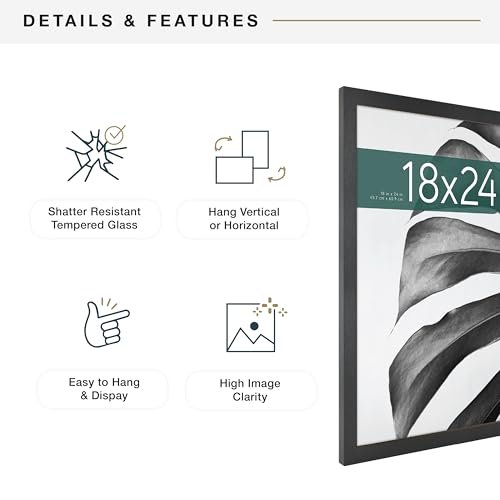 This large picture frame features a sleek 1.1-inch wide modern profile and is perfect for holding an 18×24 inch poster, picture, or artwork.