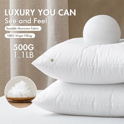 MIULEE Set of 2 Throw Pillow Inserts, 18×18 Inches, 100% Virgin Filling for Couch & Sofa.