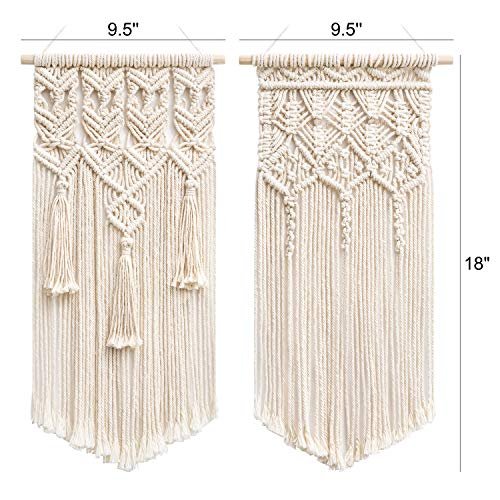 Mkono 2-Pc Macrame Wall Hanging – Boho Chic Geometric Decor for Bedroom, Nursery, or Apartment. Perfect Gift for Birthdays & Christmas! 18″ L x 9.5″ W.