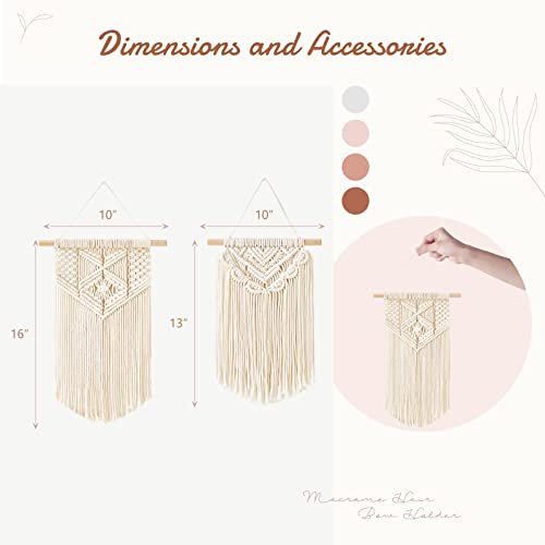 Mkono 2-Piece Macrame Wall Hanging Set – Boho Chic Decor for Bedroom, Nursery, or Living Room. Small Sizes: 13″ x 10″ & 16″ x 10″.