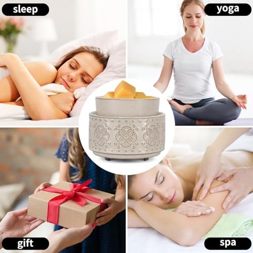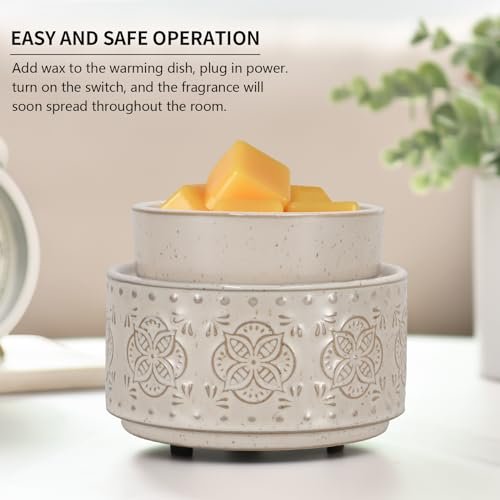 Mocosa 3-in-1 Ceramic Wax Warmer – Giftable Scented Wax Melt Burner for Mom & Grandma (Beige-Granular)