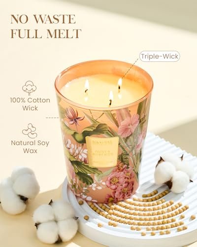 Experience the difference with our 3-wick design, featuring lead-free cotton wicks proudly made in America. Each wick self-trims for optimized burn quality, ensuring a consistent and even flame that enhances the scent throw. Ideal for larger spaces, it envelops your room in a rich fragrance that captivates the senses.