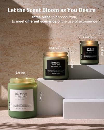 M&SENSE Bamboo Peony Large Soy Candle, 19.4oz, 110-Hour Burn, Natural Aromatherapy Gift for Women.