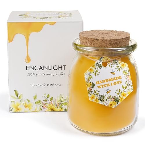 Natural Unscented Beeswax Candle in Glass Jar | 4.8oz, 32 Hours Burn Time, Non-Toxic Gift for Stress Relief