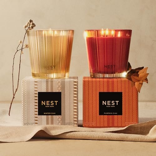 NEST New York Pumpkin Chai 3-Wick Candle – 21.2 oz – Up to 100 Hours Burn Time – Stylish Reusable Glass