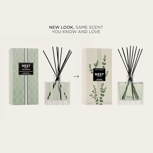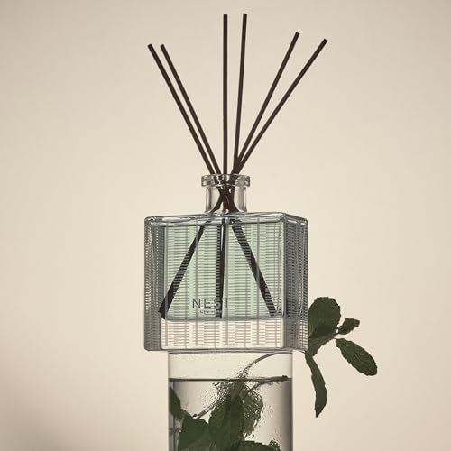 NEST New York Wild Mint & Eucalyptus Reed Diffuser – 5.9 oz, lasts 90 days, refillable glass holder, 8 natural sticks, flame-free.