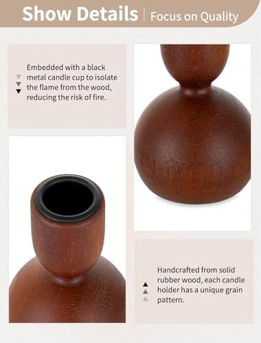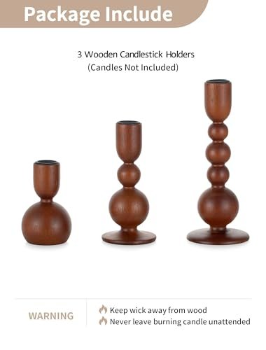 NUPTIO Set of 3 Wooden Candlestick Holders: Mid-Century Modern Caramel Decor for Thanksgiving Centerpieces.