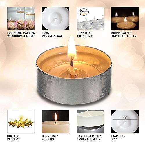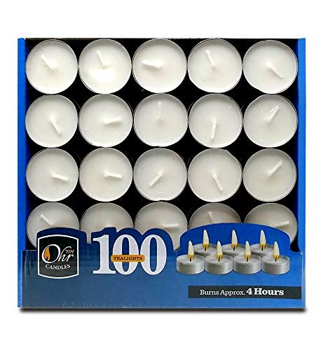 OHR CANDLES 100-Pack Unscented Tealight Candles – White Bulk Tea Lights with 4-Hour Burn Time