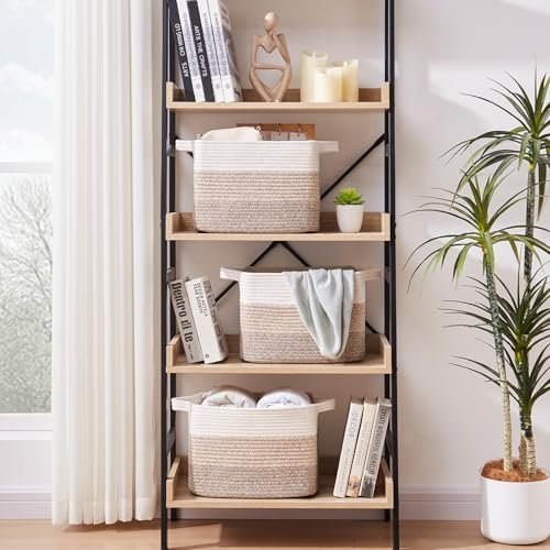 OIAHOMY Storage Baskets – Set of 3 Woven Cotton Rope Baskets for Toys & Bathroom Towels in Gradient Yellow