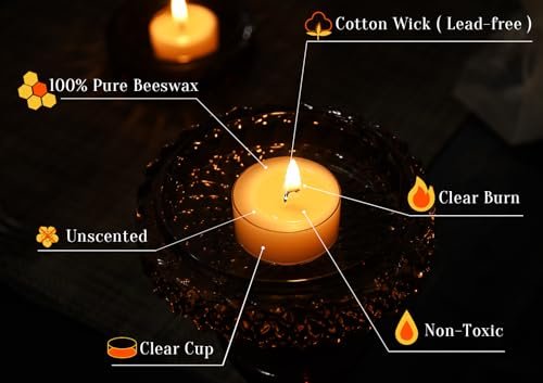 - Eco-Friendly Design: Our clean-burning tea lights are not only good for you, but also for the environment. They melt completely, leaving no waste behind, making the clear cups recyclable and reusable. Get creative and customize your tealights with DIY projects!