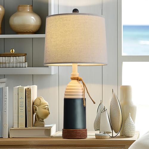 OYEARS 23.75″ Table Lamp – Modern Coastal Nautical Design for Bedroom, Living Room, Nightstand, Navy Blue.