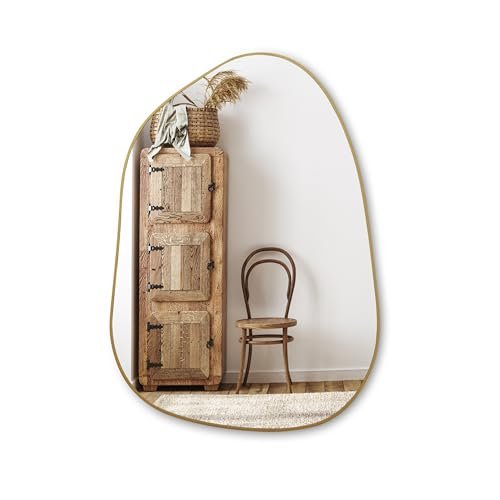 PERFNIQUE 27”x19” Gold Wood Framed Asymmetrical Wall Mirror for Bathroom, Bedroom, & Living Room