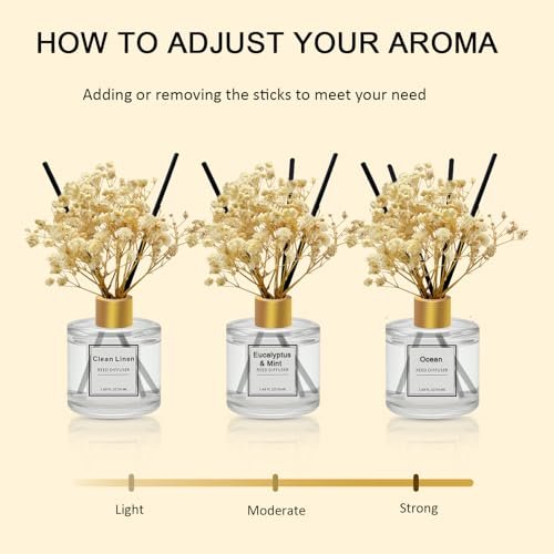 Achieve your desired atmosphere with ease! Adjust the intensity of your fragrance by adding or removing diffuser sticks. After 1-2 days of soaking, you’ll enjoy a beautifully balanced scent. When it starts to fade, simply rotate the reeds or replace them for continued enjoyment.