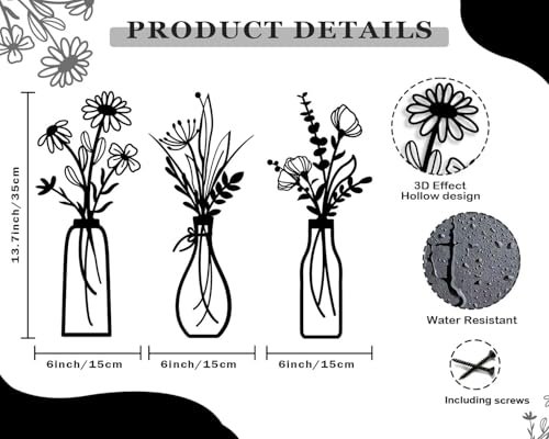✨ Chic Boho Vibes: Dive into the modern boho trend with this exquisite wall art set, featuring artistic metal vases adorned with delicate floral designs. It’s an ideal way to add a unique artistic flair to your decor, making your space truly one-of-a-kind.