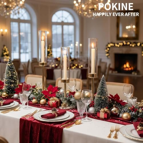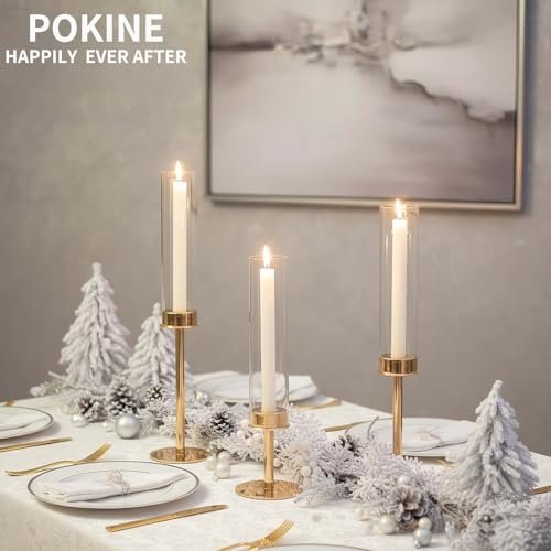 POKINE Gold Candle Holder Set of 3 for Glass Taper Candles – Perfect for Home Decor, Weddings, and Parties.