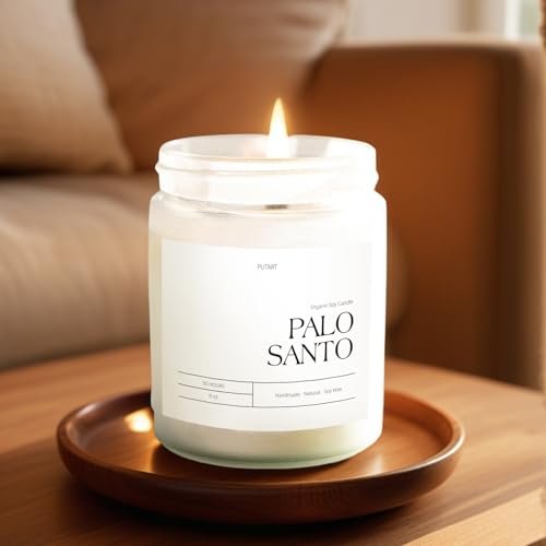 Putart Palo Santo Candle – 9oz Natural Soy Aromatherapy Candle for Home Fragrance & Stress Relief Gifts