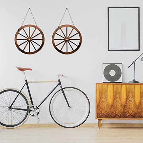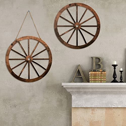 Qunclay 2 Pcs Wooden Wagon Wheel Decor – Vintage Rustic Western Cowboy Party Decorations, 12 Inch, Brown