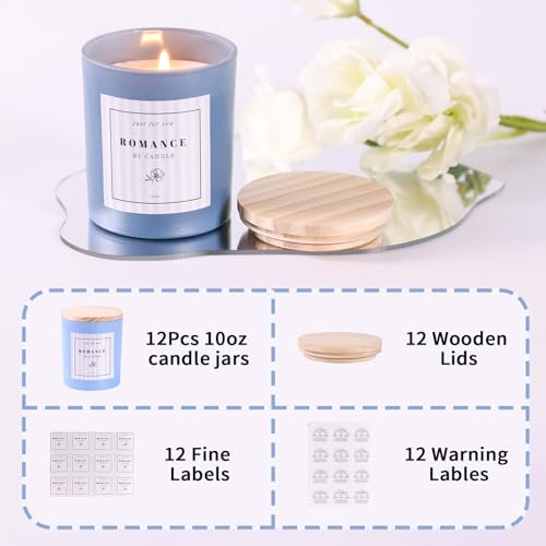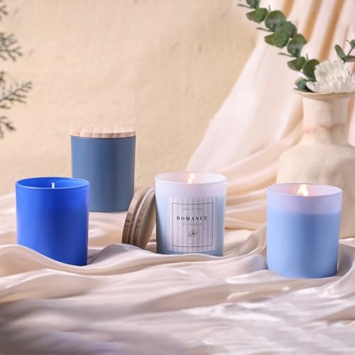 REISEN 12-Pack Assorted Blue Candle Jars – 10oz Frosted Glass Containers with Bamboo Lids for DIY Gifts and Storage.