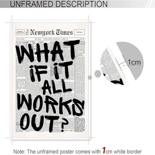 Retro Black and White Newspaper Poster: “What If It All Works Out” Inspirational Canvas Art – 12x16in Unframed Minimalist Decor for Home, Bedroom, or Dorm.