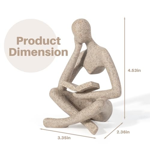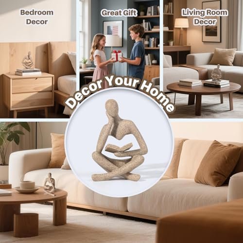 RHXRAF Abstract Thinker Statue – Modern Resin Sculptures for Bookshelf, Coffee Table & Office Decor (Beige)