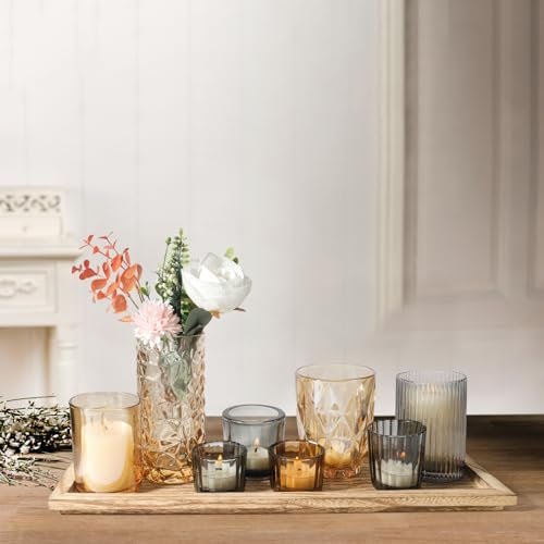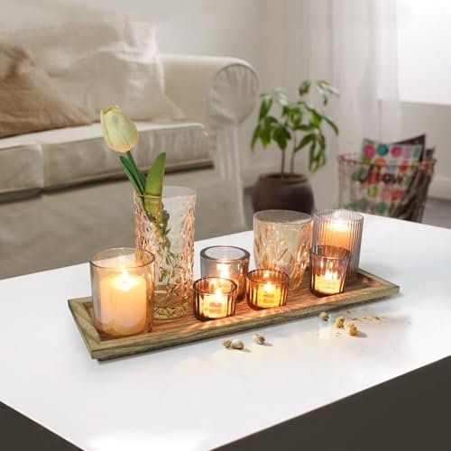 Whether gracing your mantel, dining table, coffee table, or entryway, this exquisite wooden tray and glass votives are designed to impress. Create a cozy, inviting ambiance perfect for any season—be it a romantic dinner, festive gatherings, or a simple night in.