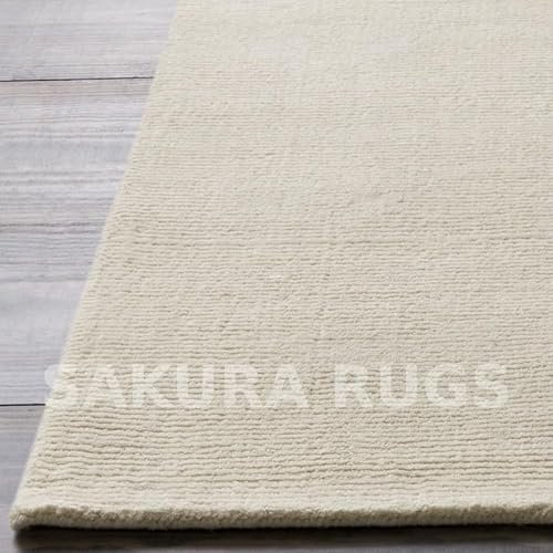 Sakura Rugs Solid Color Handmade Area Rug – Thick, Plush, Modern Cream 12’x15′ for Living Room & Bedroom.