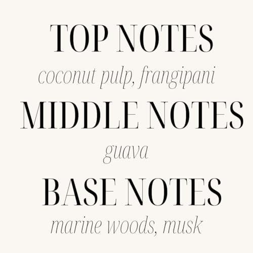 Fragrance Profile: Dive into a tropical paradise with our captivating fragrance blend. The journey begins with top notes of luscious coconut pulp and exotic frangipani, effortlessly transitioning into a heart of refreshing guava. Finally, warm musk forms the base, creating a scent experience that will transport you to sun-kissed shores.