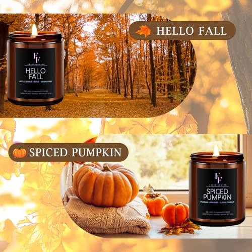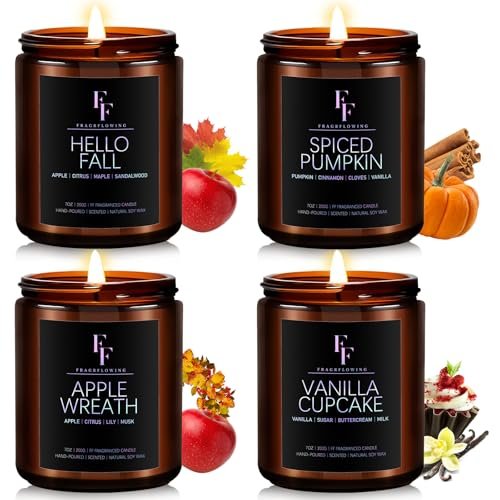 Scented Candle Set – 4 Natural Soy Wax Candles: Spice, Vanilla Cupcake, Apple Wreath, Hello Fall – Perfect Holiday Gift for Men & Women.