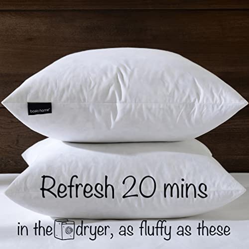 Set of 2 Basic 18×18 Decorative Down Feather Throw Pillow Inserts – White Cotton Square Pillows.