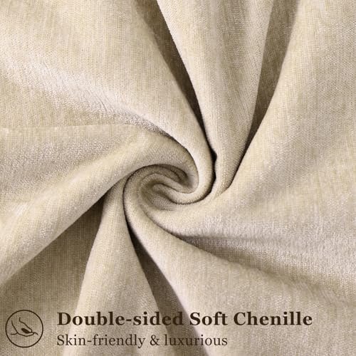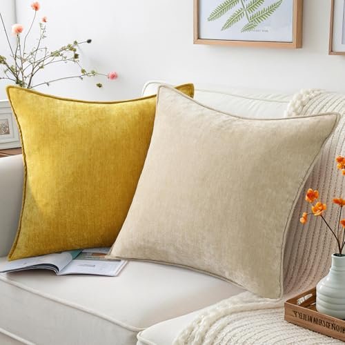 Set of 2 decorUhome 18×18 Euro Chenille Pillow Covers – Elegant Beige Soft Decorative Cushions for Living Room.
