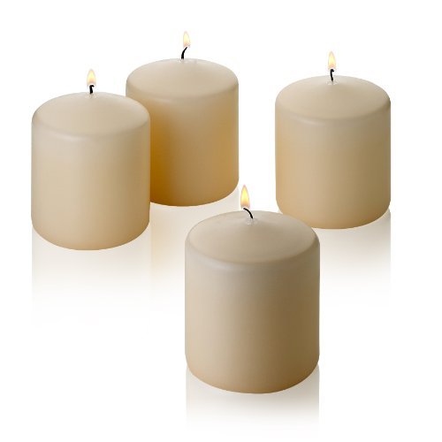 Set of 4 French Vanilla Scented Pillar Candles – 3″ Tall x 3″ Wide Each