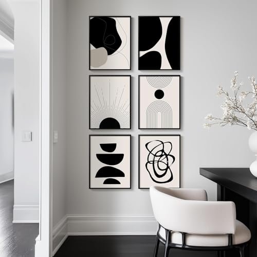 Set of 6 Framed Boho Black and White Abstract Canvas Prints for Modern Wall Decor 11×14″