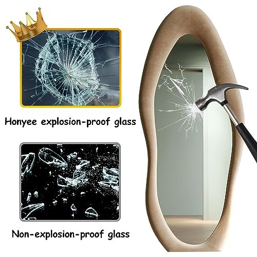 Stand out with our uniquely shaped full-length mirror! Its irregular footprint design not only looks striking but also serves as a captivating focal point in your home. Make a bold statement in your decor and elevate the tastefulness of your living space.