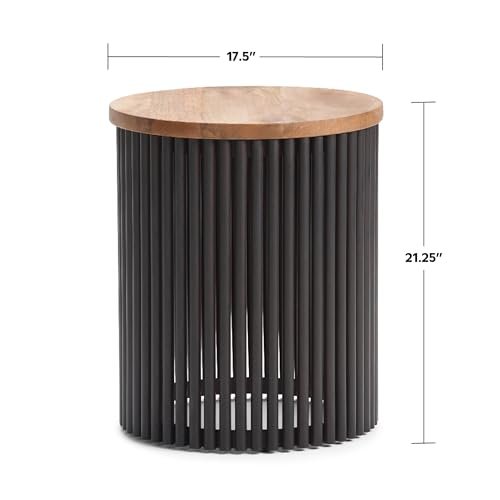 SIMPLIHOME Demy 18″ Metal and Wood Accent Table – Round Industrial Side or Coffee Table in Natural and Black. Stylish, Compact Design for Living Room.