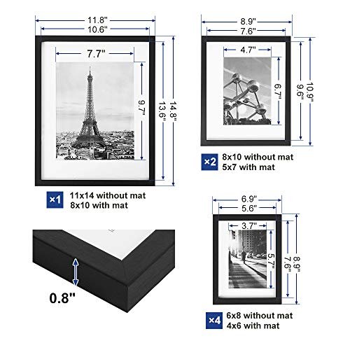 [Elevate Your Decor] Unleash your creativity with our stunning photo frame set, featuring one 11×14 frame, two 8×10 frames, and four 6×8 frames. The chic black finish beautifully balances modern elegance with a touch of vintage charm, making it the perfect addition to any wall decor. Whether for your home or as a thoughtful gift for a loved one, this versatile set adds a personal touch to any space.