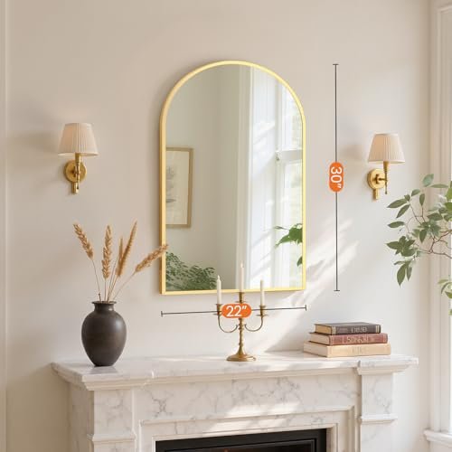 Sweetcrispy 20″x30″ Gold Arched Bathroom Mirror with HD Shatter-Proof Glass for Home Décor.