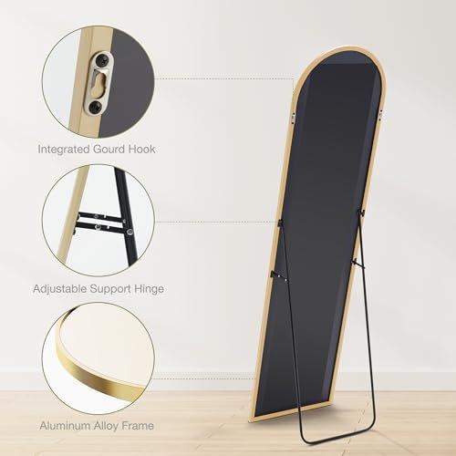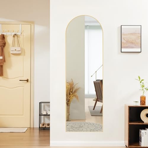 Sweetcrispy 59″x16″ Arched Full Length Mirror with Slim Aluminum Frame—Ideal for Bedroom or Cloakroom, Gold Finish.