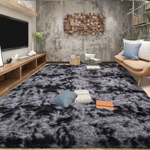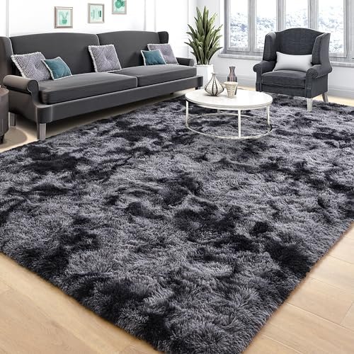 Tepook 9×12 Area Rugs: Super Soft Dark Grey Shaggy Rugs for Living Room, Bedroom, Kids, & Nursery, Non-Slip.