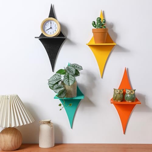 Elevate your home decor with our Mid-Century Modern Wall Shelves Set! This unique package includes four stunning rhombus-shaped shelves that effortlessly marry functionality with style. Perfect for showcasing your favorite collectibles, these shelves not only serve as vibrant decor but also double as convenient storage solutions.