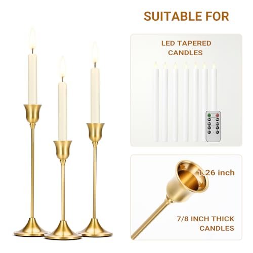 Tifanso Brass Gold Taper Candle Holders – Set of 3 Vintage Tall Pillar Decor for Weddings & Dining Room.