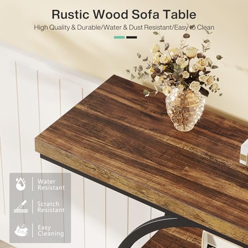 Tribesigns 41.3″ Console Table: Industrial 4-Tier Sofa Table with Circle Base, Rustic Brown Accent Table for Living Room or Entryway