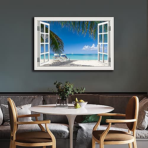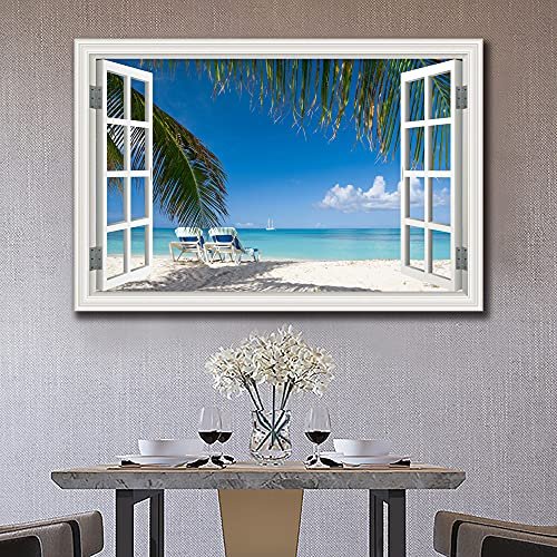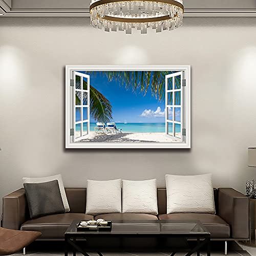 Tropical Beach Canvas Art: Palm Tree Wall Decor for Living Room & Bedroom – Coastal Ocean Print