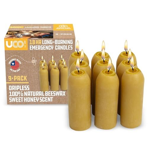 UCO 18-Hour Beeswax Candles for Lanterns & Emergencies – 9-Pack, Made in USA