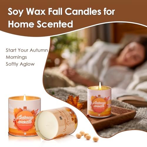 Vanilla Cinnamon Fall Candles – 9oz Natural Soy Wax, Non-Toxic, 40-Hour Burn, Perfect for Gifts!