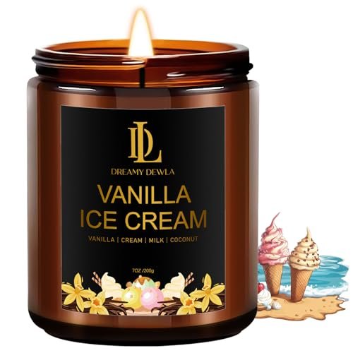 Vanilla Ice Cream Scented Candle – 7oz Natural Soy Candle for Home, 50-Hour Burn, Ideal Gift for Men & Women.