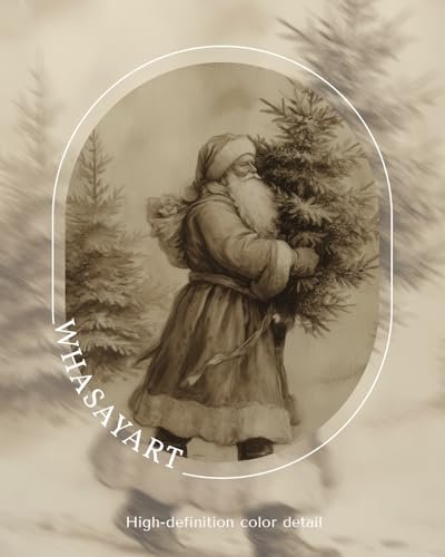 WHASAYART Vintage Santa Claus with Christmas Tree Wall Art – 12×16 Framed Canvas Print, Rustic Décor.