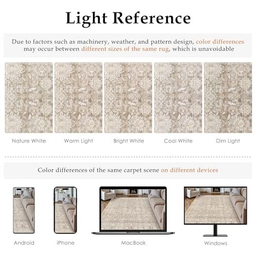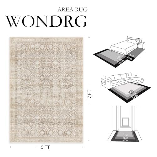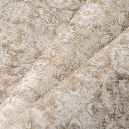 WondRg 8×10 Beige Washable Area Rug: Floral, Non-Slip, Low Pile, Stain-Resistant for Living Room, Bedroom & Office.