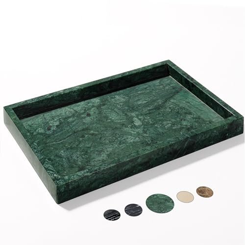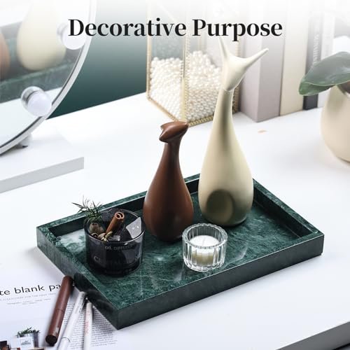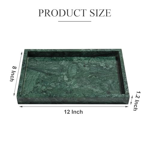 YMXYJM Genuine Natural Marble Tray – Luxury Dark Green Vanity and Bathroom Storage, 12″x8″x1.2″