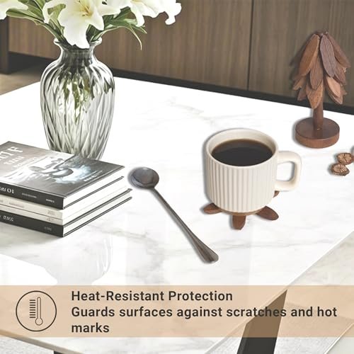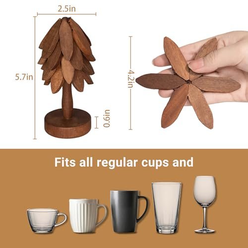 Yuoyar Tree-Shaped Sapeli Wood Coasters Set for Stylish Coffee Table and Kitchen Decor.