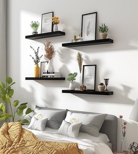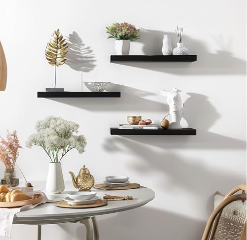 YYWUOJJ Rustic Wood Floating Shelves – Set of 6 Black Wall Decor for Bedroom, Bathroom, Kitchen, Living Room